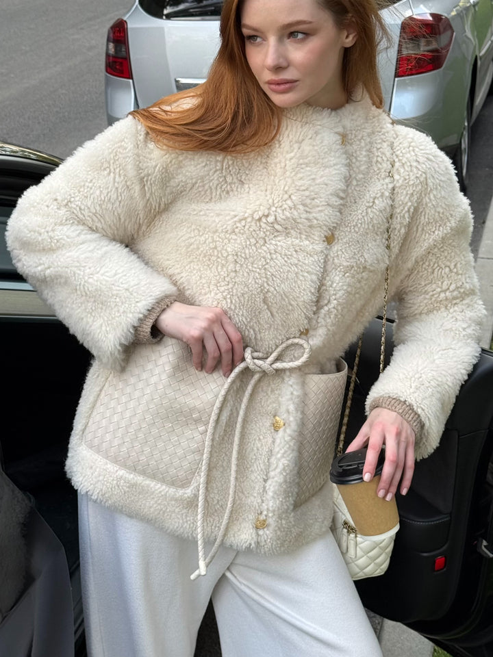 Premium Curly Sheepskin: Crafted from high-grade natural sheepskin, this jacket offers an exquisite curly texture that feels soft to the touch. The plush finish blends exceptional warmth with a uniquely chic aesthetic.