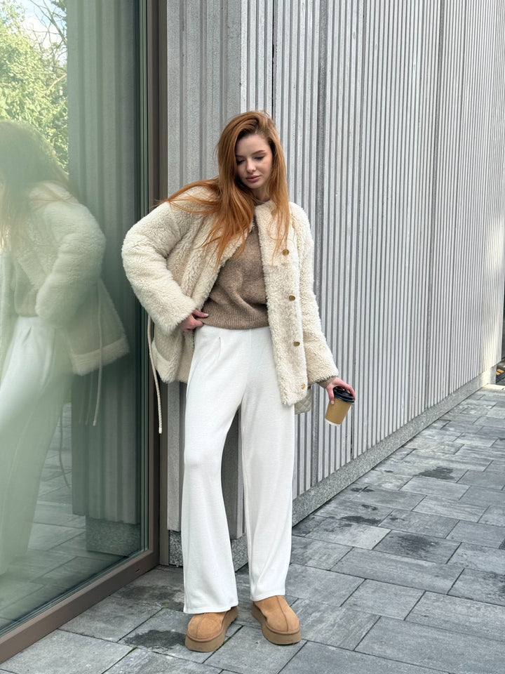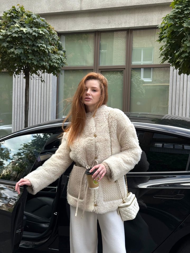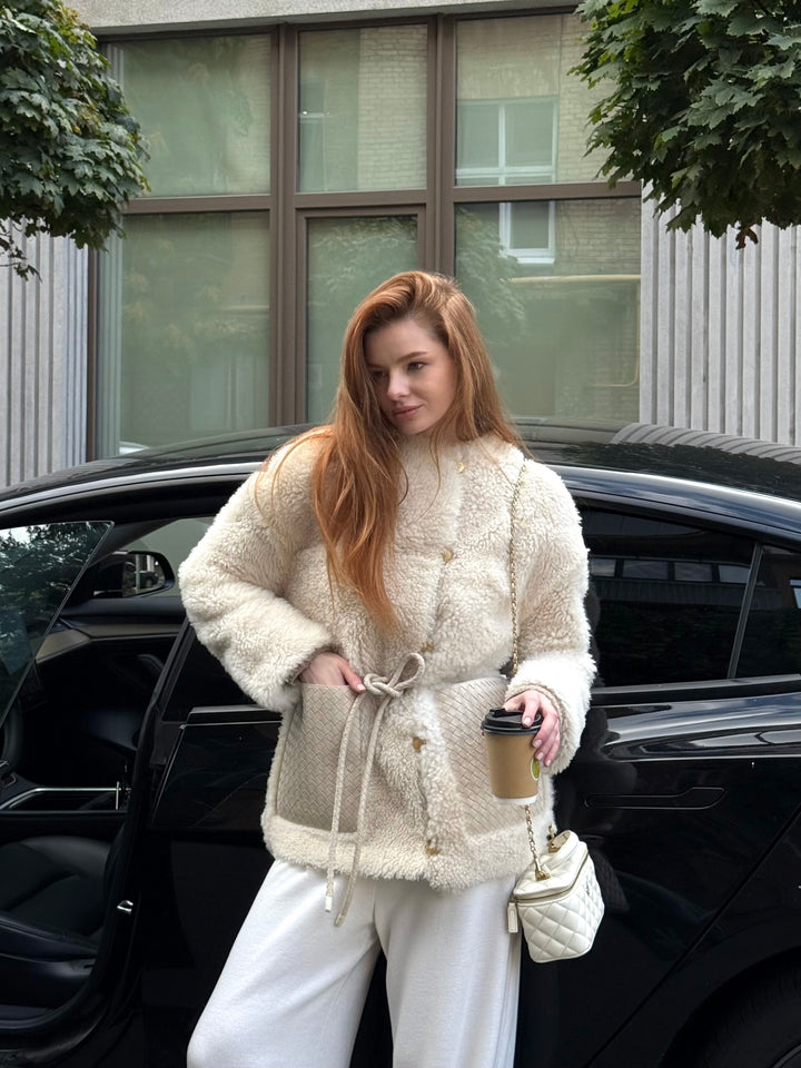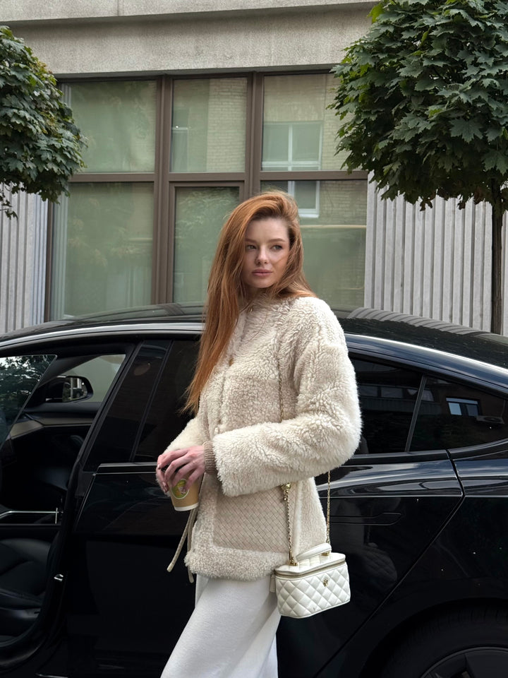 Experience Iconic Style with the Ivory Curly Sheepskin Jacket
