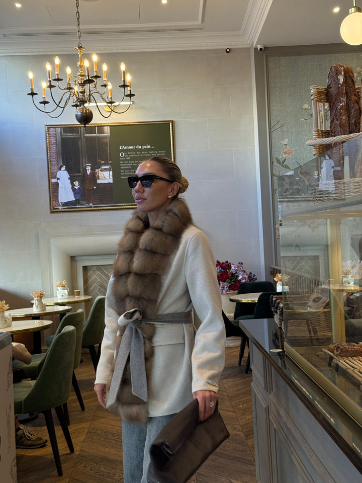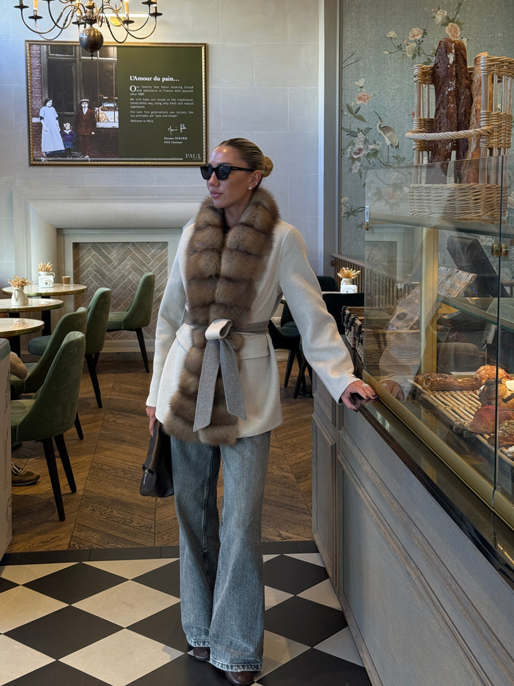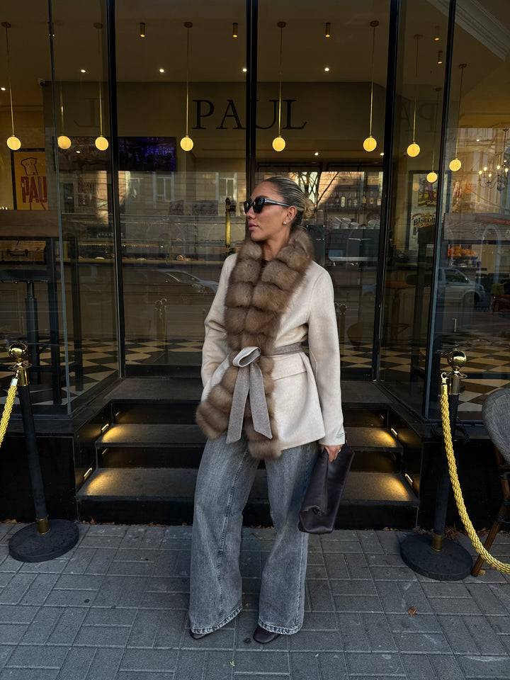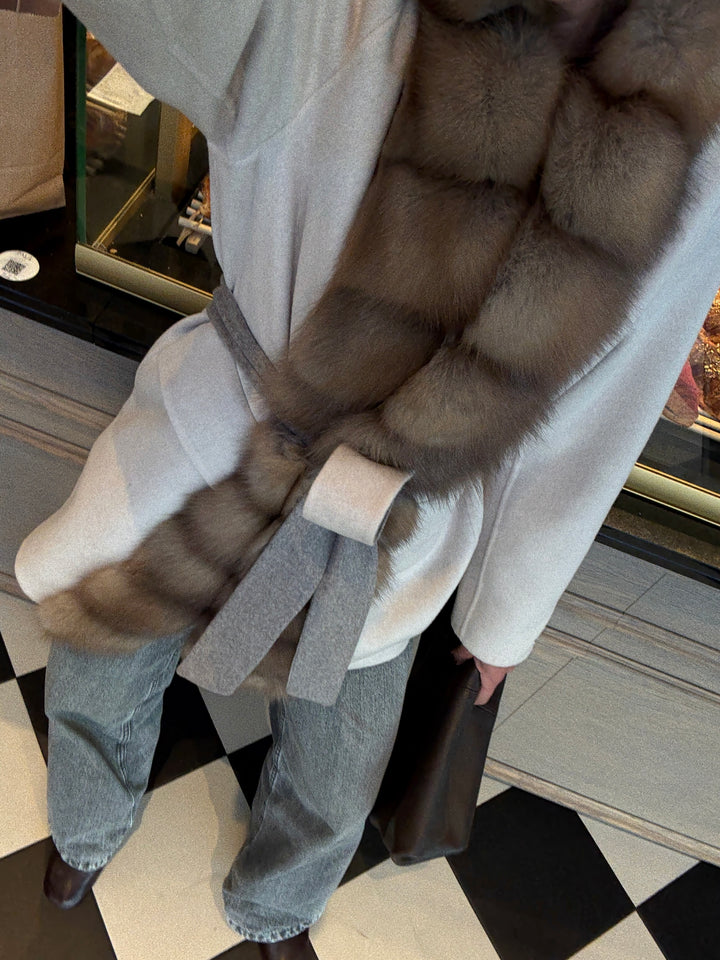 Experience Elegance Redefined with the Loro Piana Cashmere Coat Featuring Baum Marten Trim