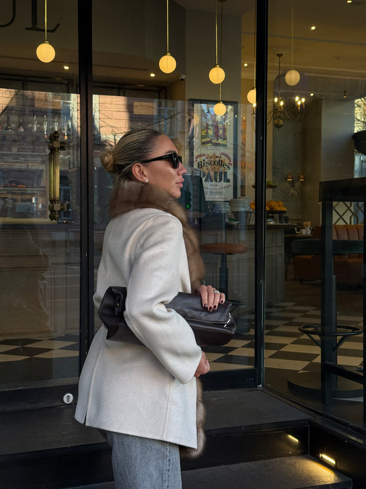 Sophisticated Neutral Palette: With its soft neutral hue, this versatile coat complements any outfit, whether paired with jeans for casual outings, tailored pants for daytime chic, or evening attire for special occasions.