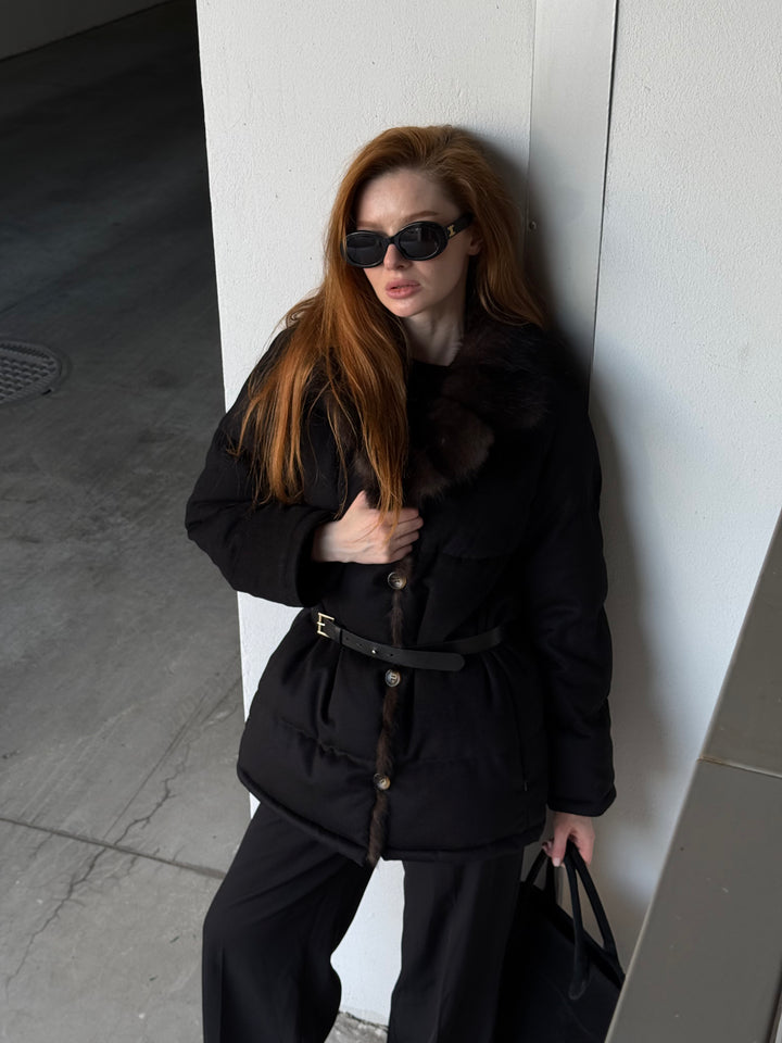 Genuine Barguzin Sable Trim: Elevate your cold-weather wardrobe with the rare and exquisite Barguzin sable fur that graces the elongated collar. Known for its rich texture and deep, dark sheen, this sable trim adds an element of regality and sophistication.