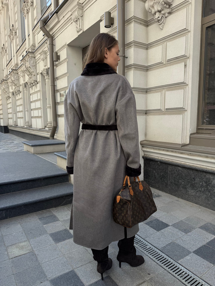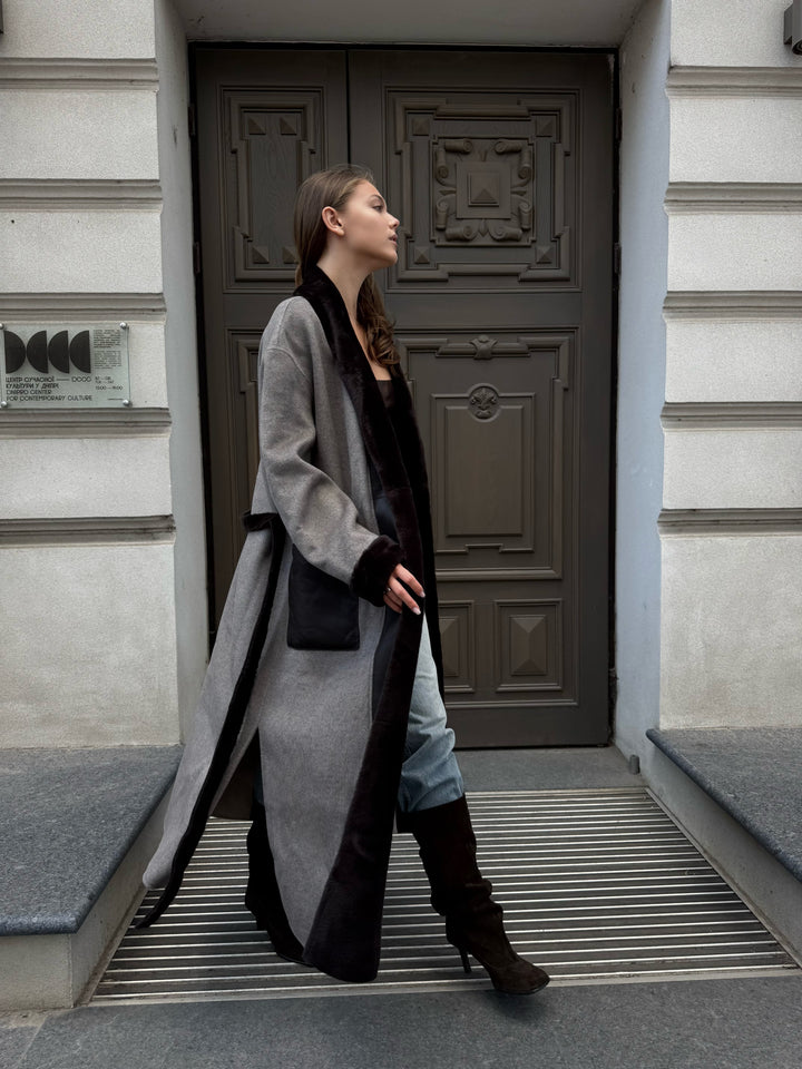 Pair this grey cashmere coat with sleek black boots and a classic handbag for an instantly polished look, or layer it over your go-to winter dress for effortless chic.