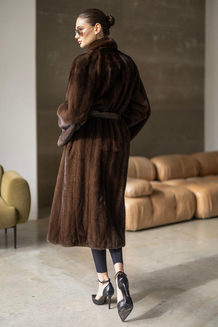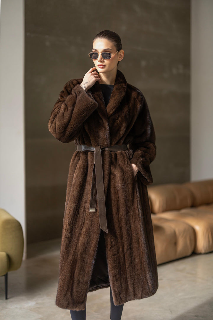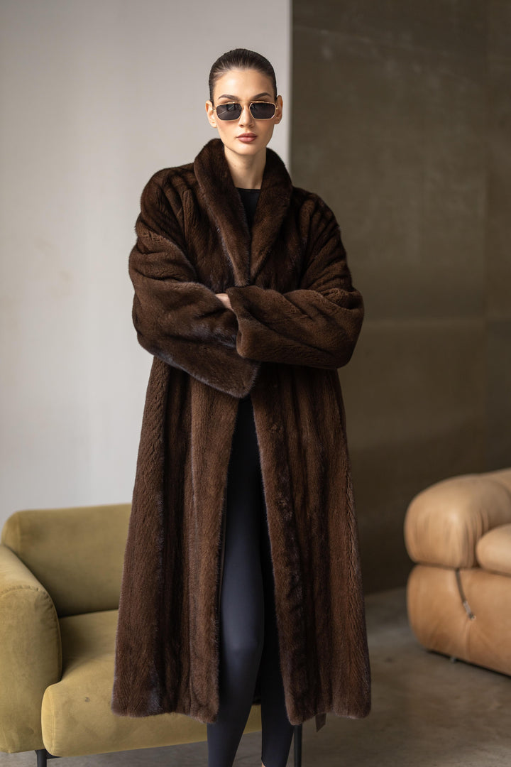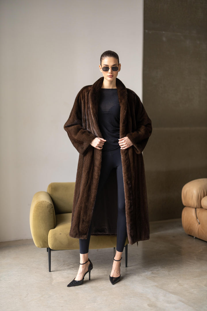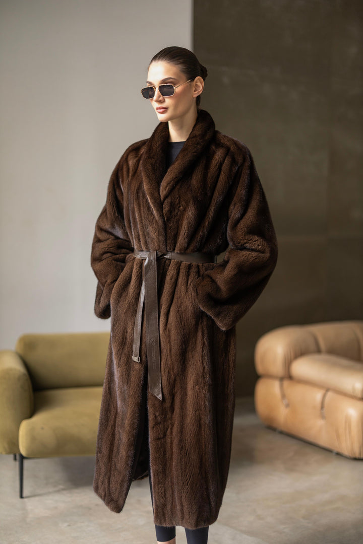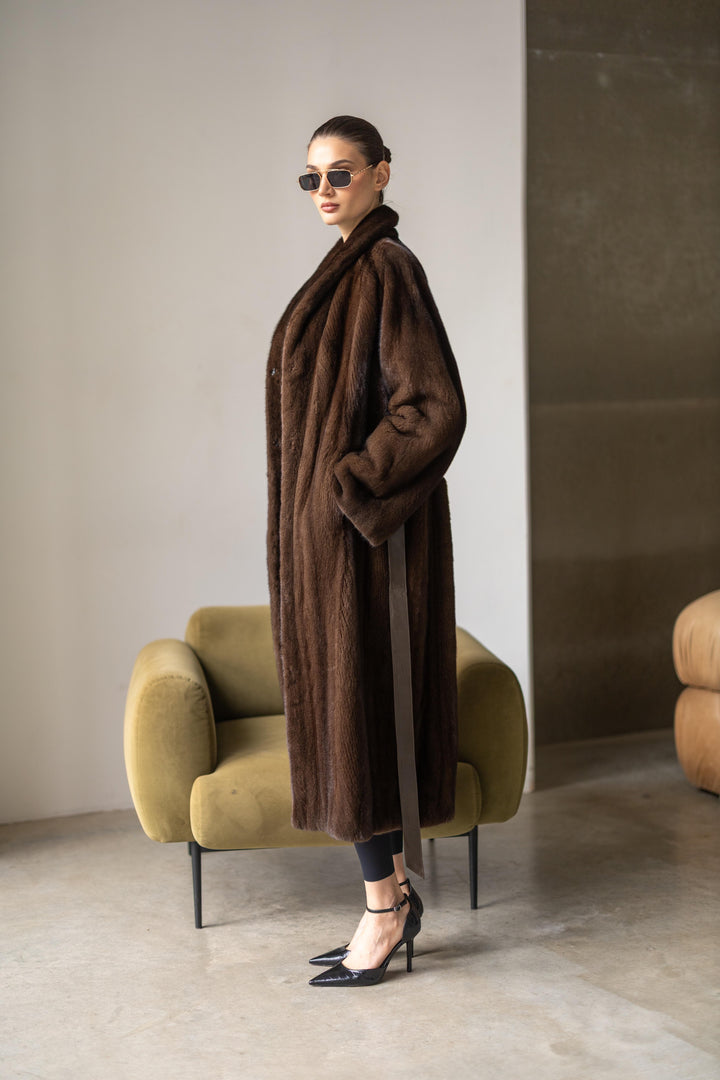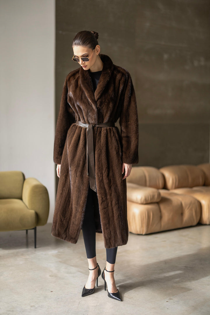 Step into absolute sophistication with our luxurious brown mink fur coat, designed for those who demand premium quality and timeless style. Crafted from 100% authentic mink fur, this exquisite piece features a rich, deep brown hue that adds elegance to any outfit.