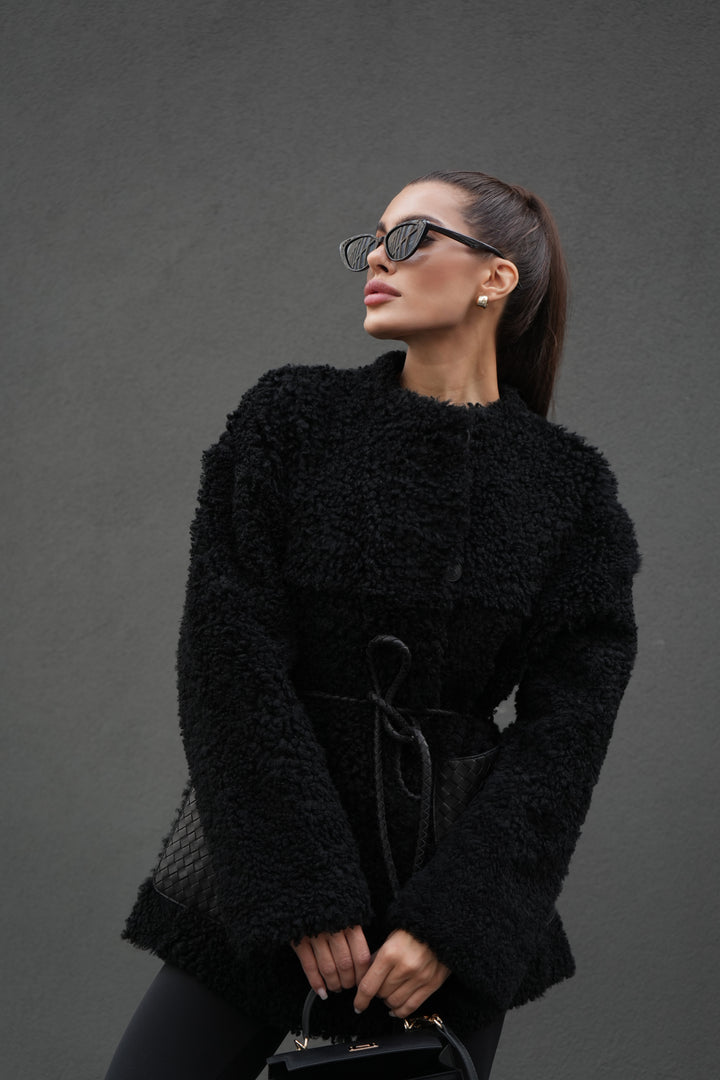 Elevate your winter wardrobe with the Natural Tigrado Sheepskin Jacket by Donna Baconi, a statement piece that blends premium comfort with timeless style. This jacket is crafted from authentic Tigrado sheepskin, renowned for its unique curly texture and luxurious softness. The Tigrado sheepskin adds a modern twist to traditional outerwear, offering both warmth and effortless sophistication.