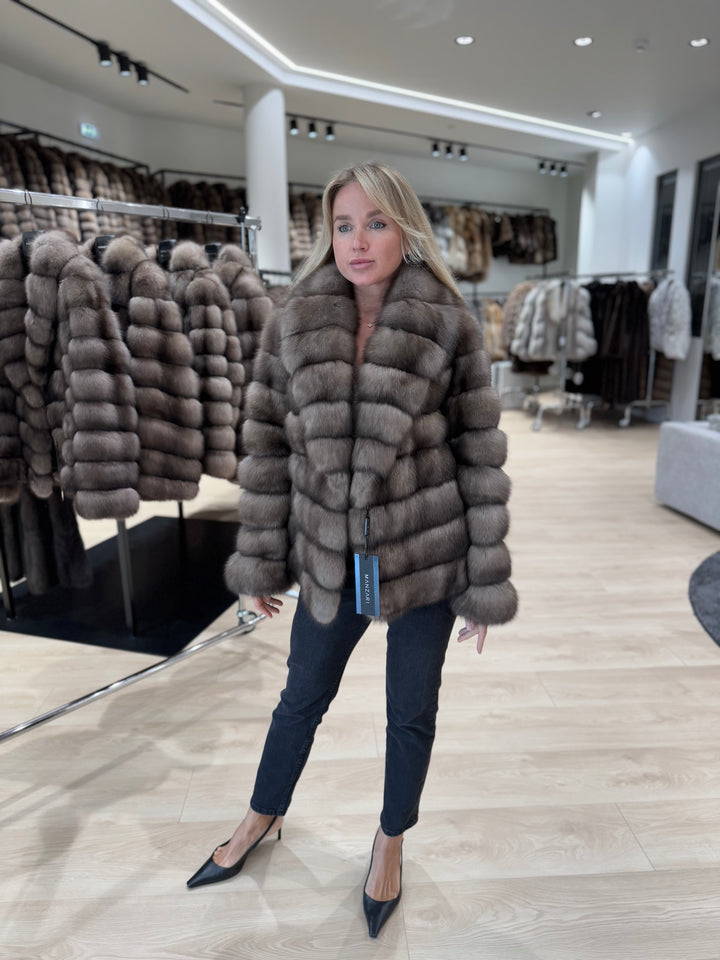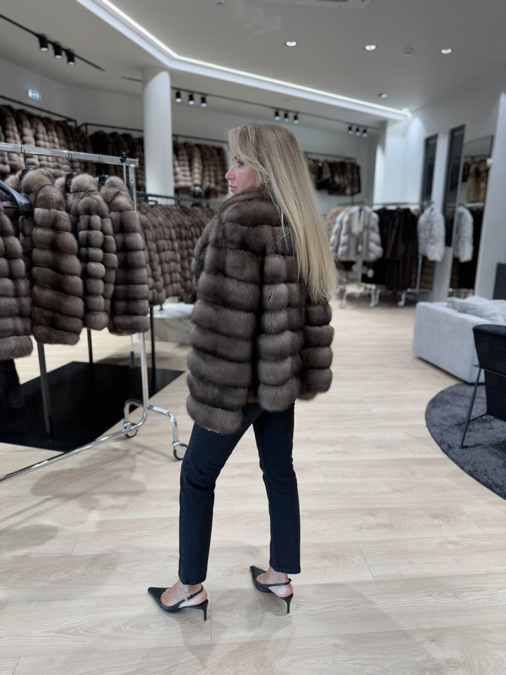 Horizontal Fur Layers: The rich layering design highlights the natural beauty of the sable fur with its expertly arranged horizontal patterns. This thoughtful detail amplifies its luxurious texture and visual appeal.