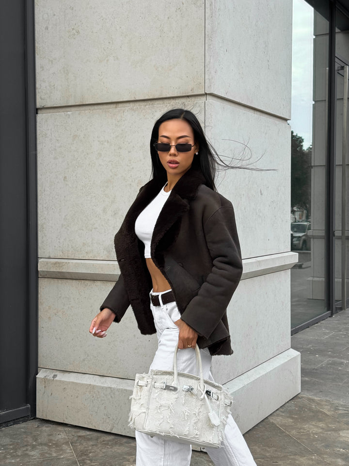 Indulge in Luxury with Our Chocolate Brown Sheepskin Jacket