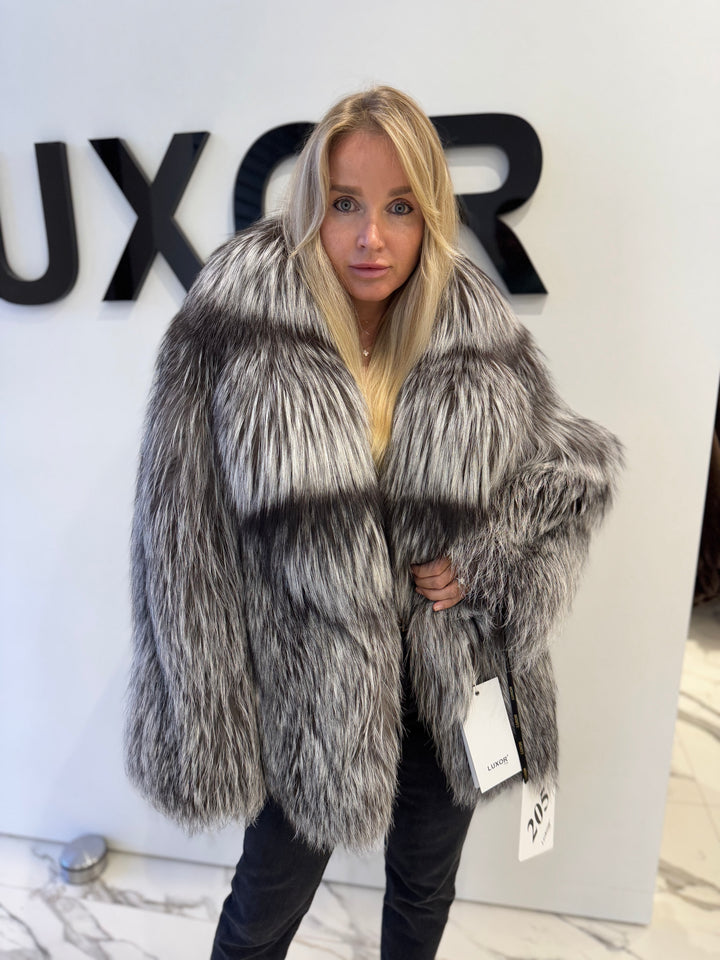 Step into a world of refined luxury with the Silver Fox Fur Coat, boasting the unique Arzante colorway—a piece that encompasses brilliance, fashion-forward design, and unparalleled warmth. Perfect for those who appreciate opulence and statement-making garments, this coat delivers glamour and functionality in equal measure.