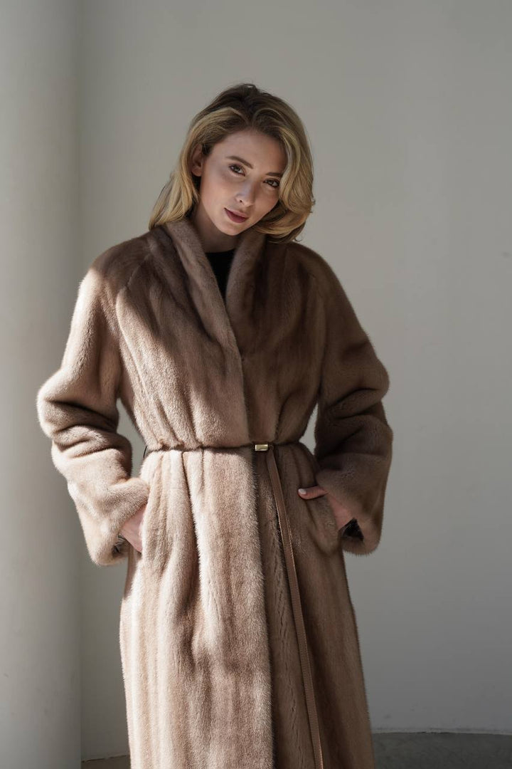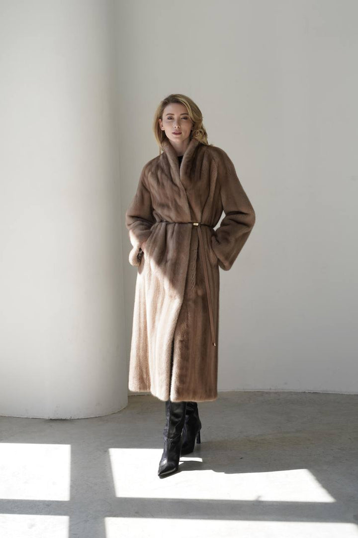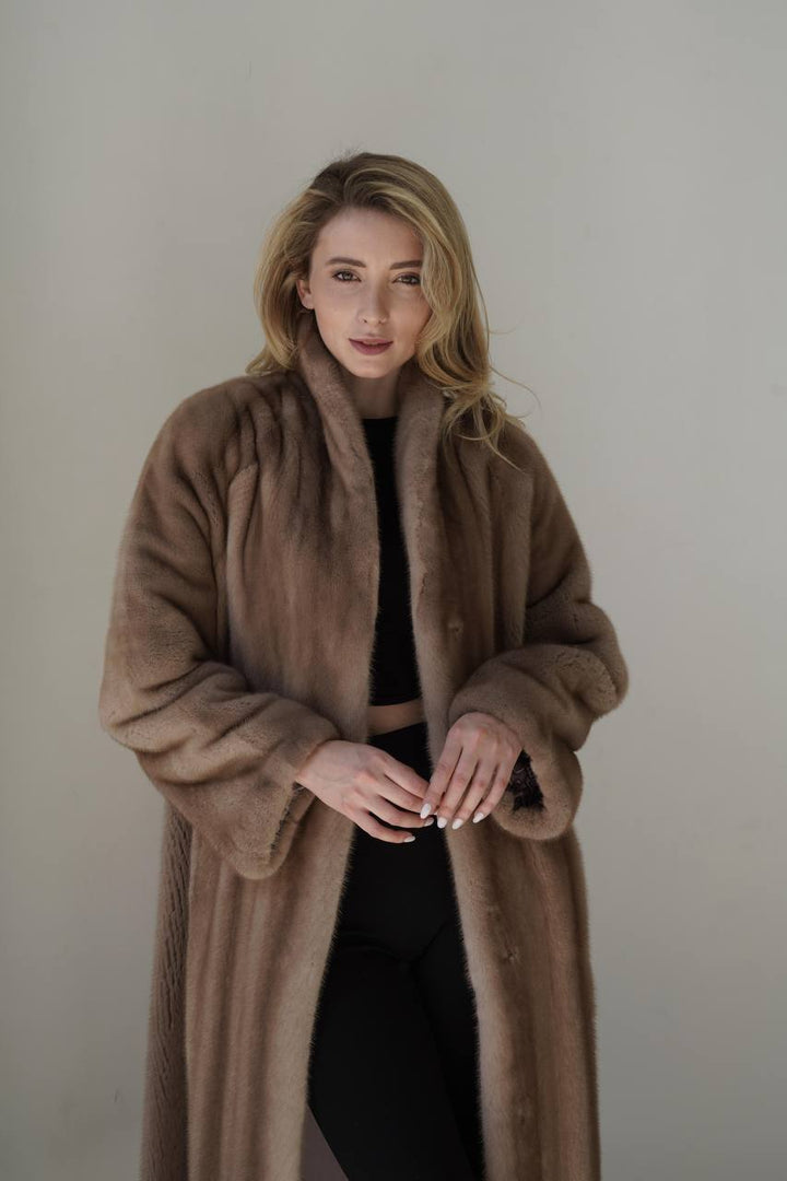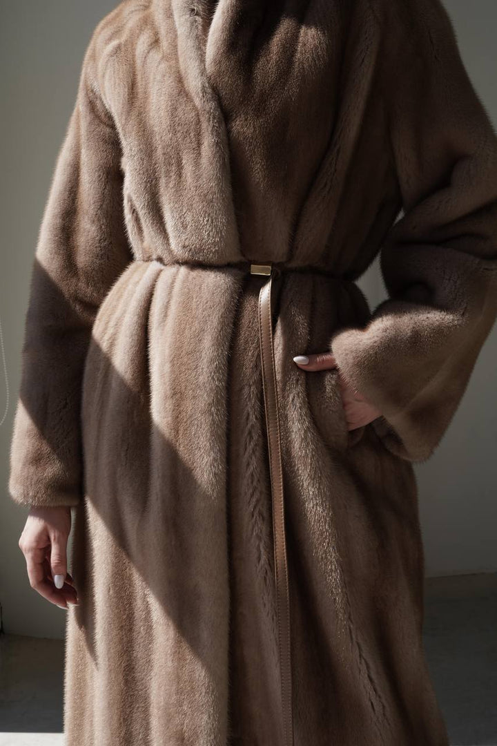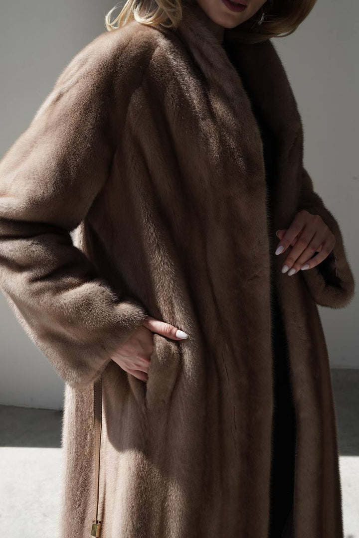 - Authentic Mink Fur: Crafted from premium-quality mink fur, this coat offers unmatched softness and a lustrous texture. The natural taupe hue exudes warmth, making it a versatile wardrobe essential.
