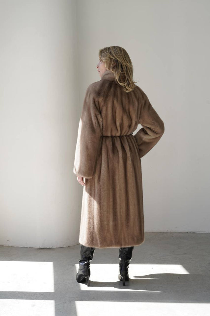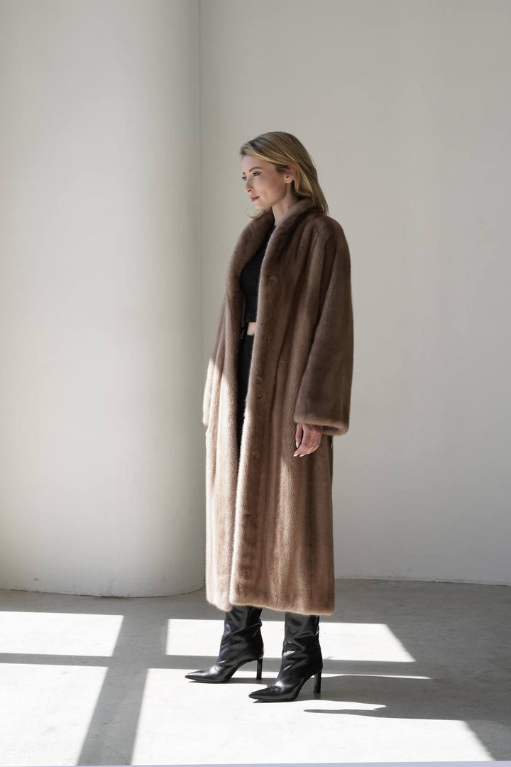Discover the refined charm of the Taupe Mink Fur Coat—a piece that embodies sophistication and timeless beauty. Add it to your wardrobe today and bask in the allure of effortless elegance.